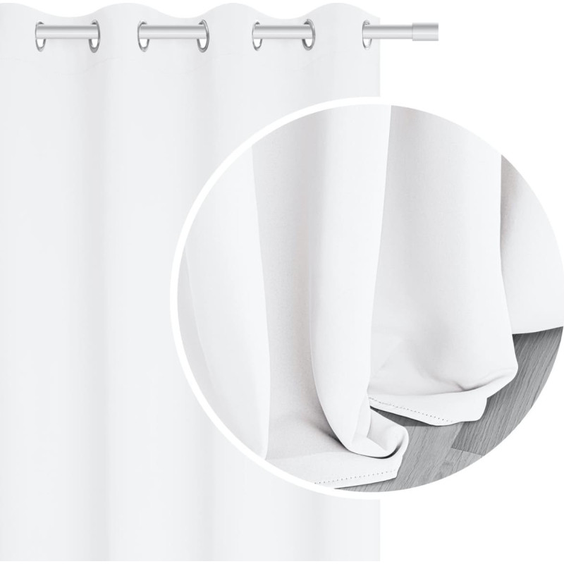 Jūsu iepirkumu grozs ir tukšs! Aptumšojošs aizkars 140 x 250 balts, gatavs ar Hold Blackout starplikām