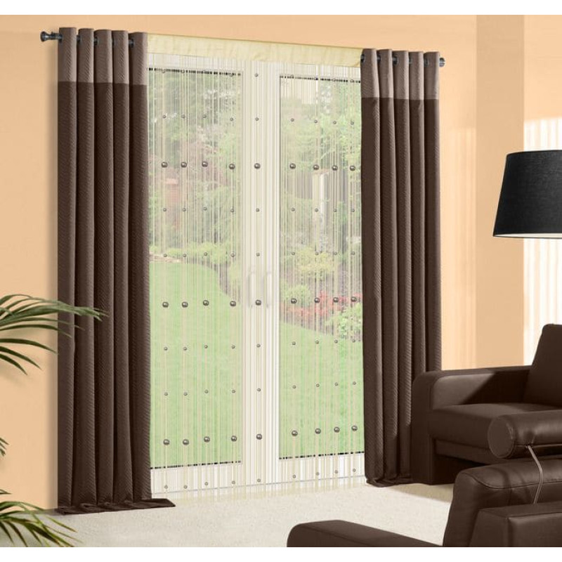 Jūsu iepirkumu grozs ir tukšs! Dekoratīvais aizkars Spageti 140x250 Pērlītes/Krēms/02