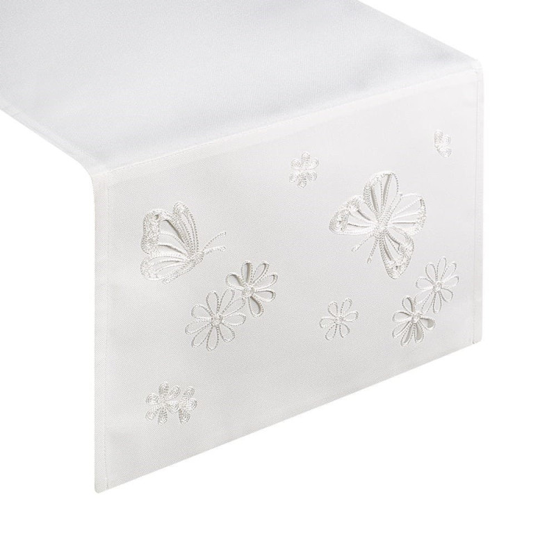 Jūsu iepirkumu grozs ir tukšs! Dekoratīvais galdauts 40x140 Liberty balti izšūti ažūra tauriņu ziedi