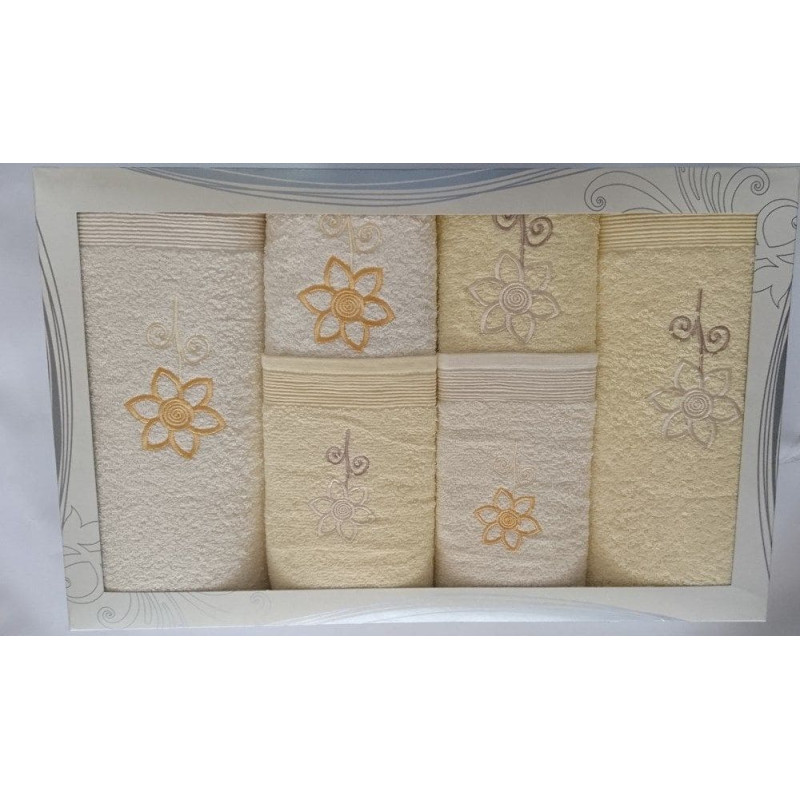 Jūsu iepirkumu grozs ir tukšs! 6 Viana Castelo dvieļu komplekts kastītē ar krēmdzeltenu ziedu izšuvumu