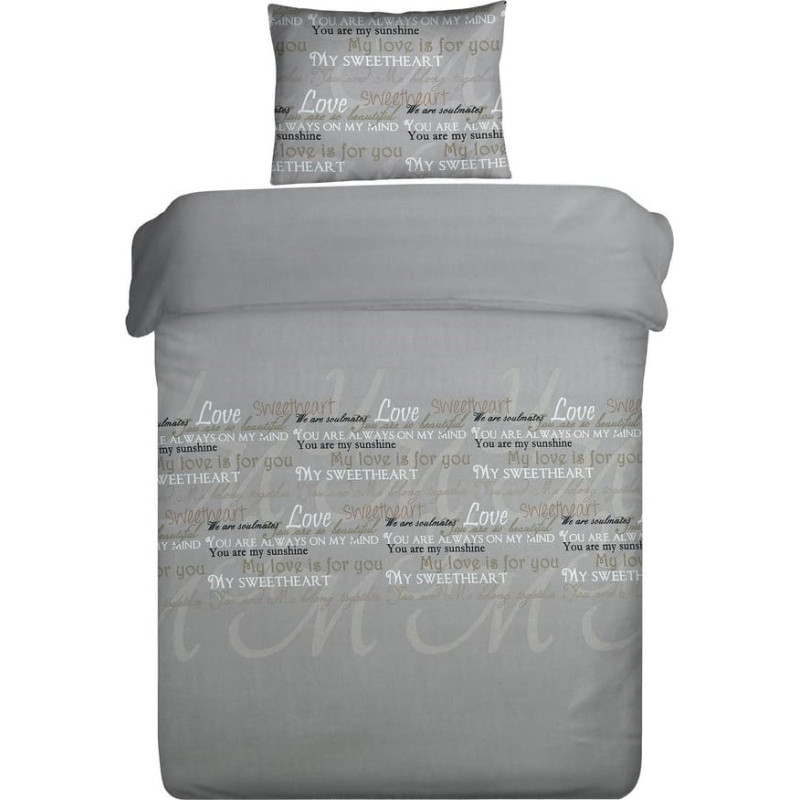 Jūsu iepirkumu grozs ir tukšs! Mikrošķiedras gultas veļa 160x200 Lenny bēšs pelēks ar uzrakstiem