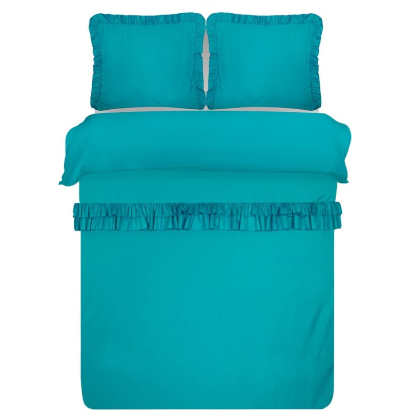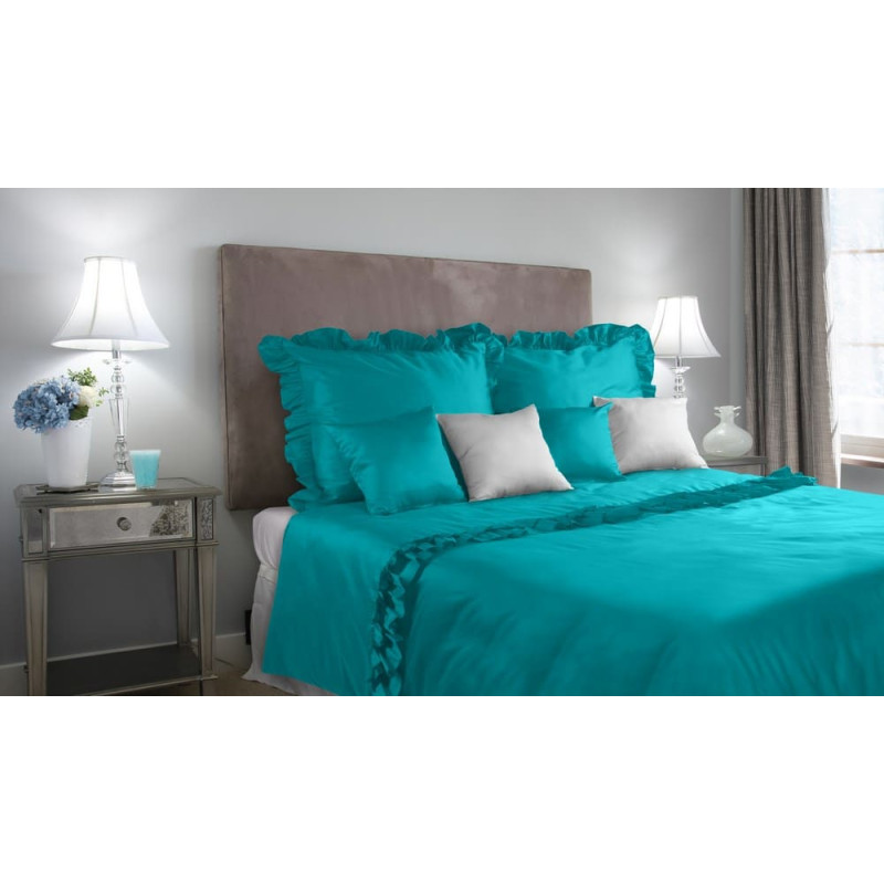 Jūsu iepirkumu grozs ir tukšs! Satīna gultas veļa 140x200 Romantica tirkīza ar volāniem