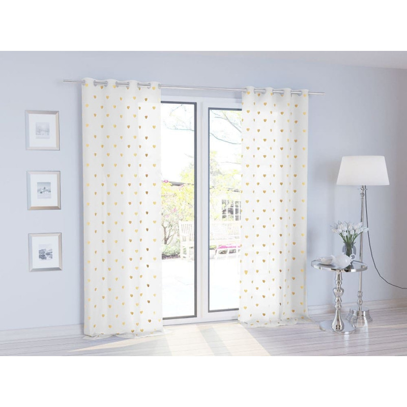 Jūsu iepirkumu grozs ir tukšs! Gatavs aizkars ar cilpām 140x250 Sirsniņas, baltas, zelta sirsniņas