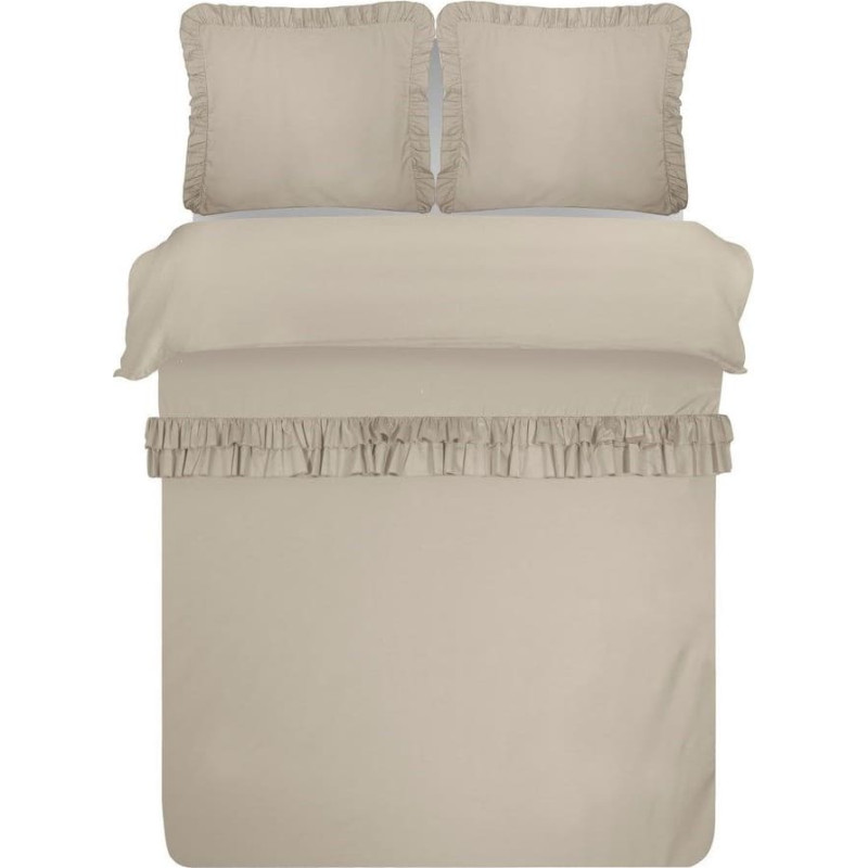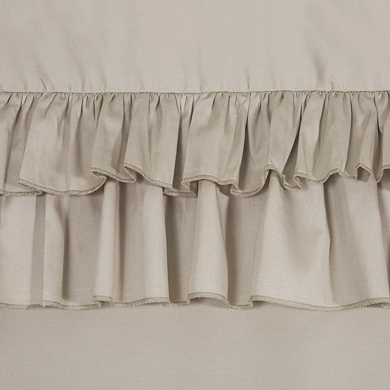 Jūsu iepirkumu grozs ir tukšs! Romantica bēša satīna gultas veļa 200x220 ar volāniem