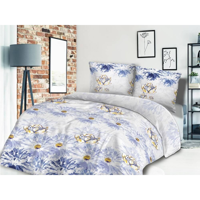 Jūsu iepirkumu grozs ir tukšs! Satīna gultasveļa 140x200 1454/1 ziedi ūdensrozes margrietiņas balta zila Satynlove