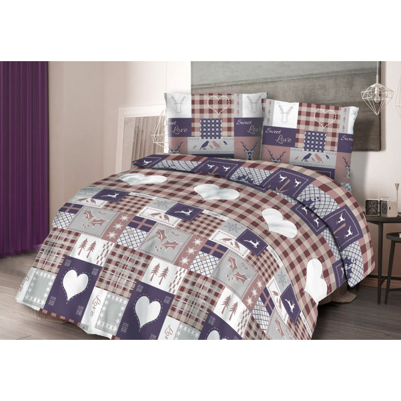 Jūsu iepirkumu grozs ir tukšs! Flaneļa gultas veļa 180x200 31444/1 bēša violeta Ziemassvētku sirsniņa