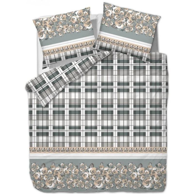 Jūsu iepirkumu grozs ir tukšs! Flaneļa gultasveļa 200x220 31455/1 pelēki bēši grafīta rūtaini ziedi