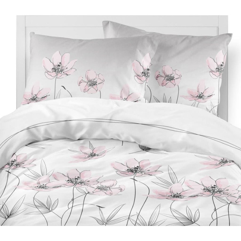 Jūsu iepirkumu grozs ir tukšs! Flaneļa gultasveļa 220x200 2685 Balts pelēks pulveris rozā ziedi