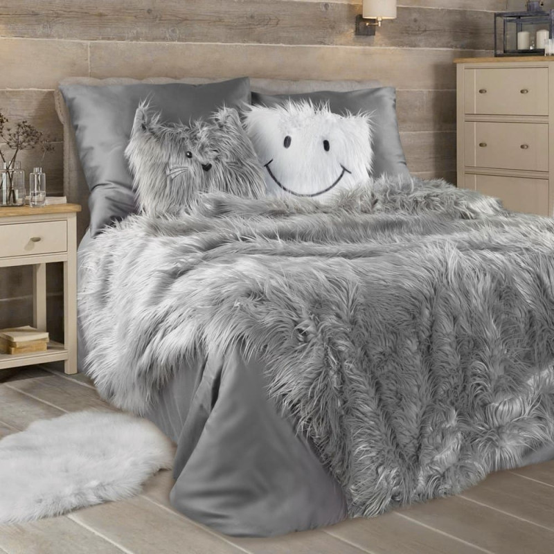 Jūsu iepirkumu grozs ir tukšs! Dekoratīvs gultas pārklājs 150x200 Ermes sudraba pinkaina kažokāda