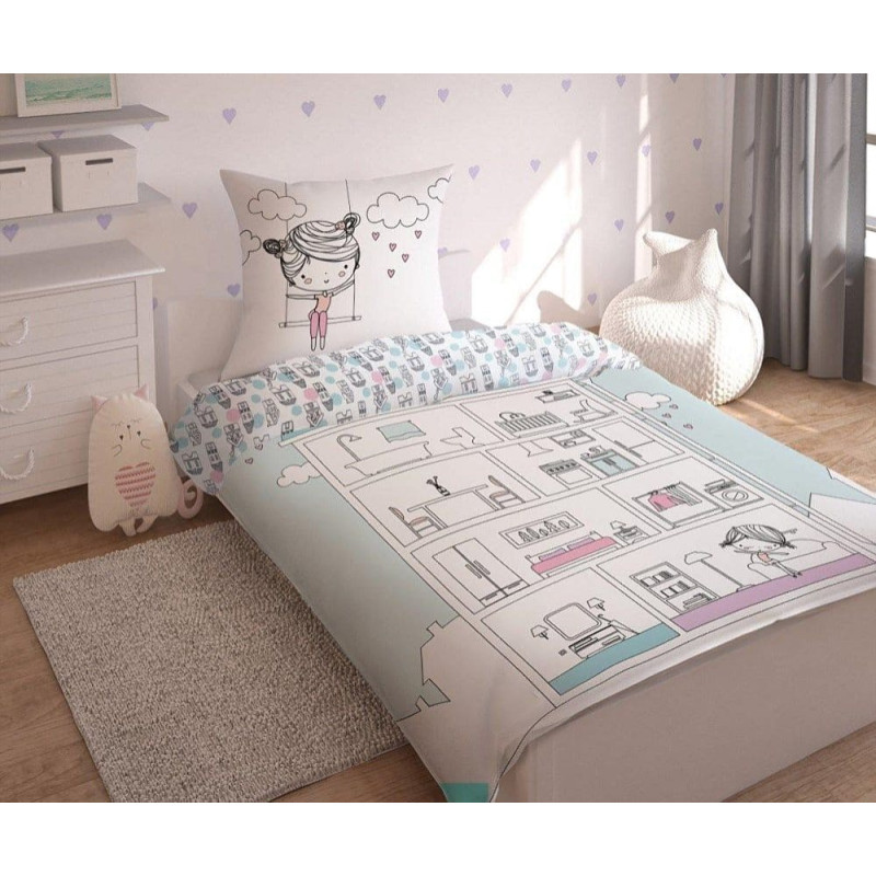 Jūsu iepirkumu grozs ir tukšs! Kokvilnas gultas veļa 160x200 Domek 6132, sekciju, piparmētra 2659, abpusēja