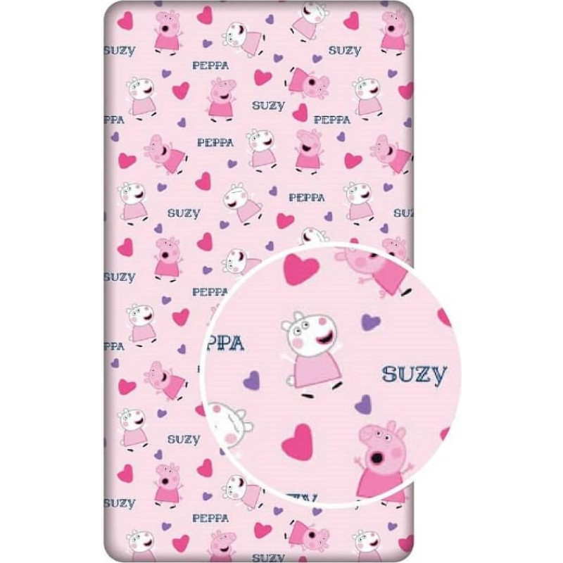 Jūsu iepirkumu grozs ir tukšs! Kokvilnas palags 90x200 Peppa Pig pāris Suzy cūku sirsniņas 4130 bērniem
