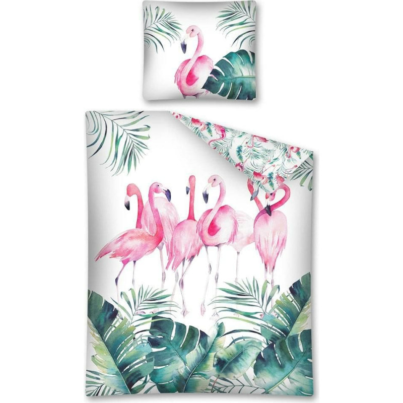 Jūsu iepirkumu grozs ir tukšs! Kokvilnas gultasveļa 160x200 Flamingos Monstera lapas 7800 balta zaļa rozā 2915 A