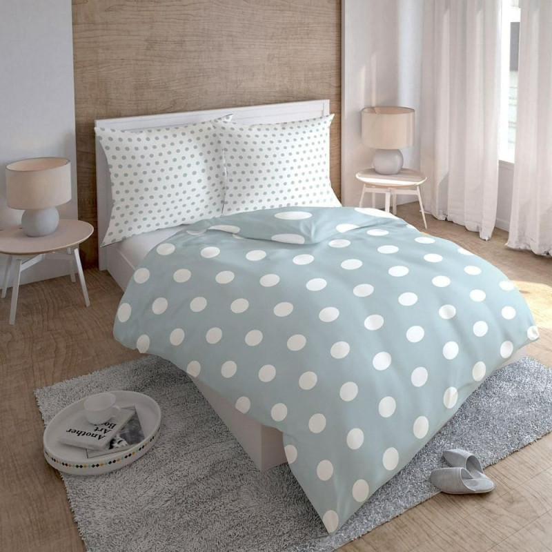 Jūsu iepirkumu grozs ir tukšs! Flaneļa gultas veļa 220x200 2463 D polka punktiņi tirkīza jūras balta