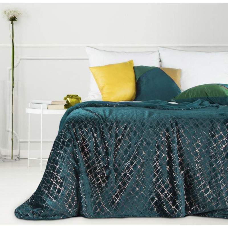 Jūsu iepirkumu grozs ir tukšs! Mikrošķiedras gultas pārklājs sega 200x220 Sandra tirkīza zelta