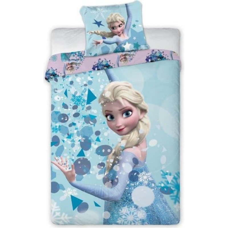 Jūsu iepirkumu grozs ir tukšs! Kokvilnas gultas veļa 140x200 Frozen 5496 Frozen Elsa Anna zilas sniegpārslas zvaigznes