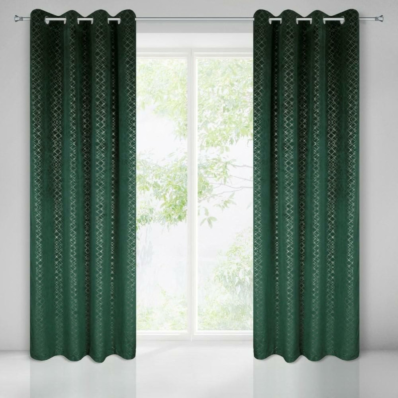 Jūsu iepirkumu grozs ir tukšs! Gatavs aizkars ar cilpām 140x250 Chiara zaļš tumšas ģeometrijas sudraba samts