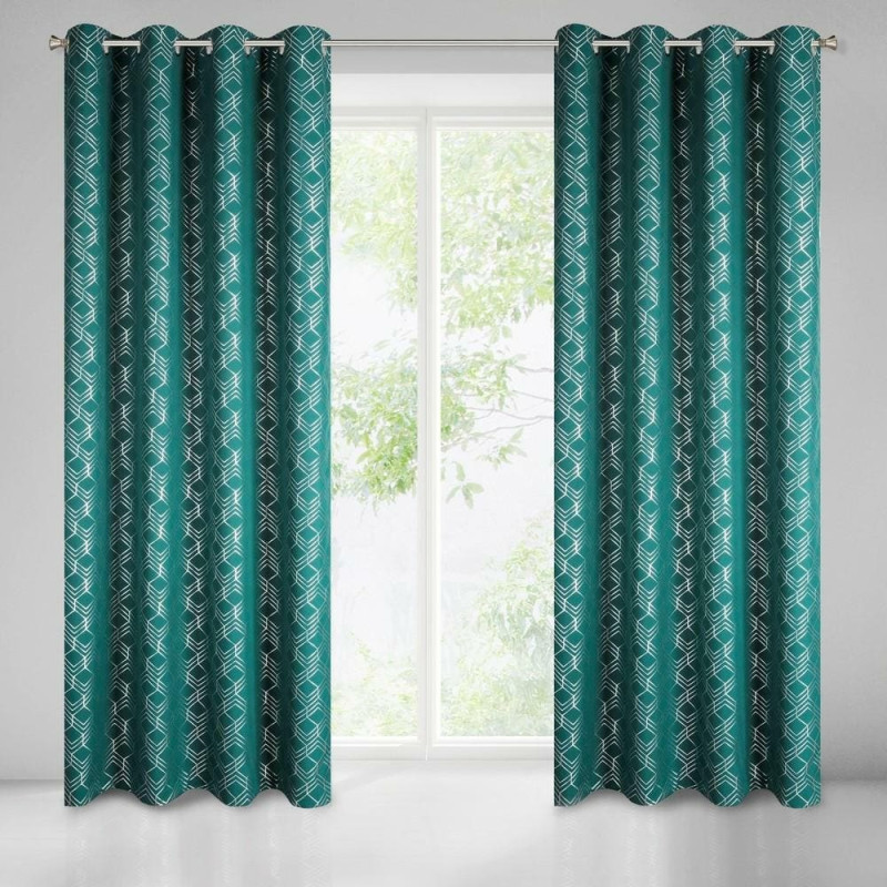 Jūsu iepirkumu grozs ir tukšs! Gatavs aizkars ar cilpām 140x250 Noelia zaļa sudraba ģeometrija