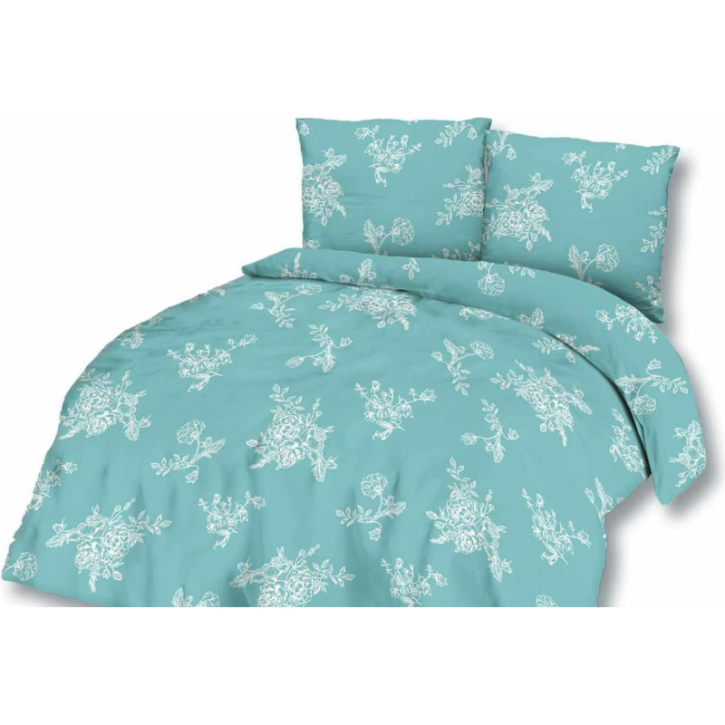 Jūsu iepirkumu grozs ir tukšs! Satīna gultasveļa 140x200 ziedu pušķis, jūras tirkīzs 1487/1 Satynlove
