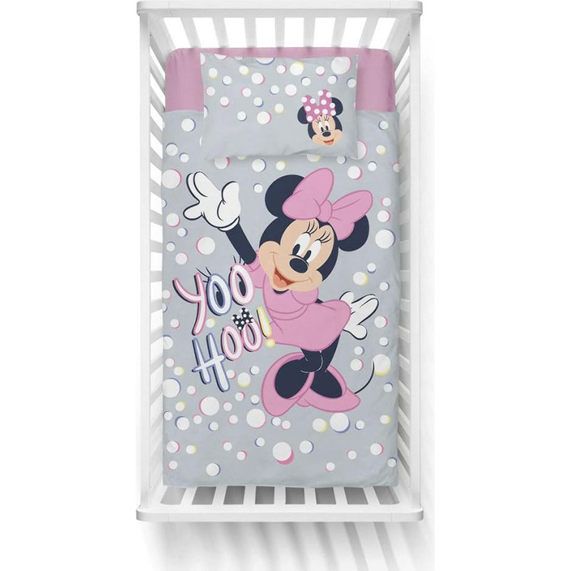 Jūsu iepirkumu grozs ir tukšs! Kokvilnas gultasveļa 100x135 Mini Minnie Mouse bantes ziedi polka punkti purpuri rozā balts 0243