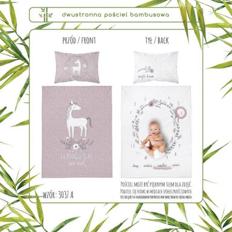 Jūsu iepirkumu grozs ir tukšs! Bambusa gultas veļa 90x120 Unicorn pony rozā gultai 3037 A