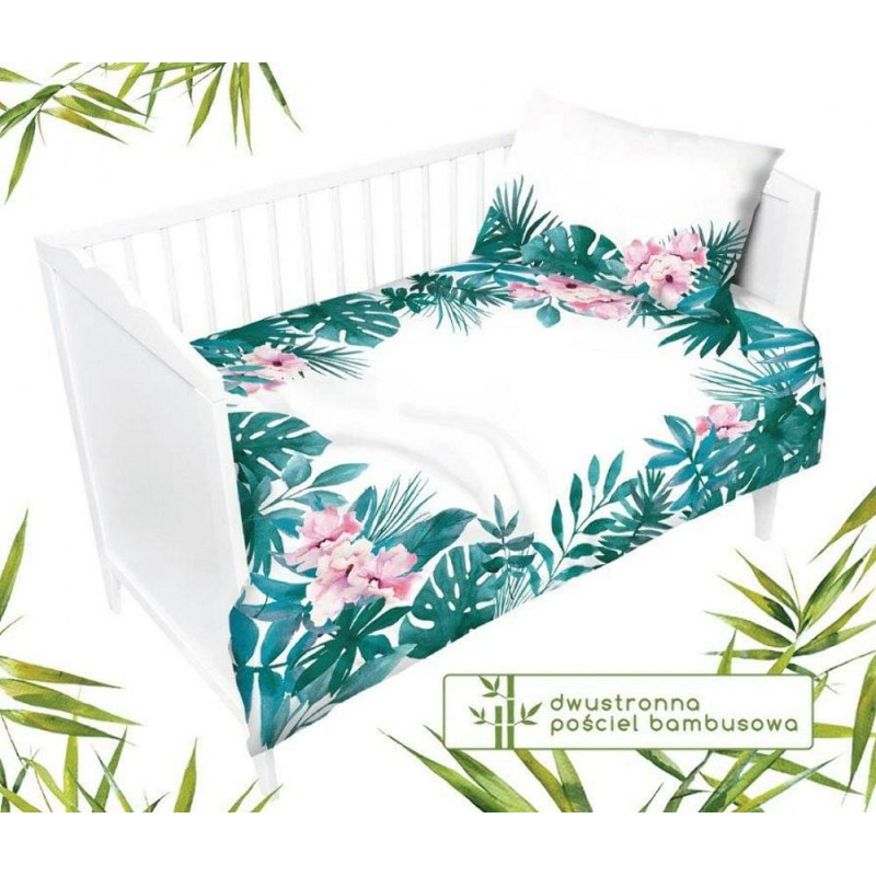 Jūsu iepirkumu grozs ir tukšs! Bambusa gultas veļa 90x120 Lapas Monstera ziedi palmas tirkīza tumši rozā gultai 3046 B abpusēja