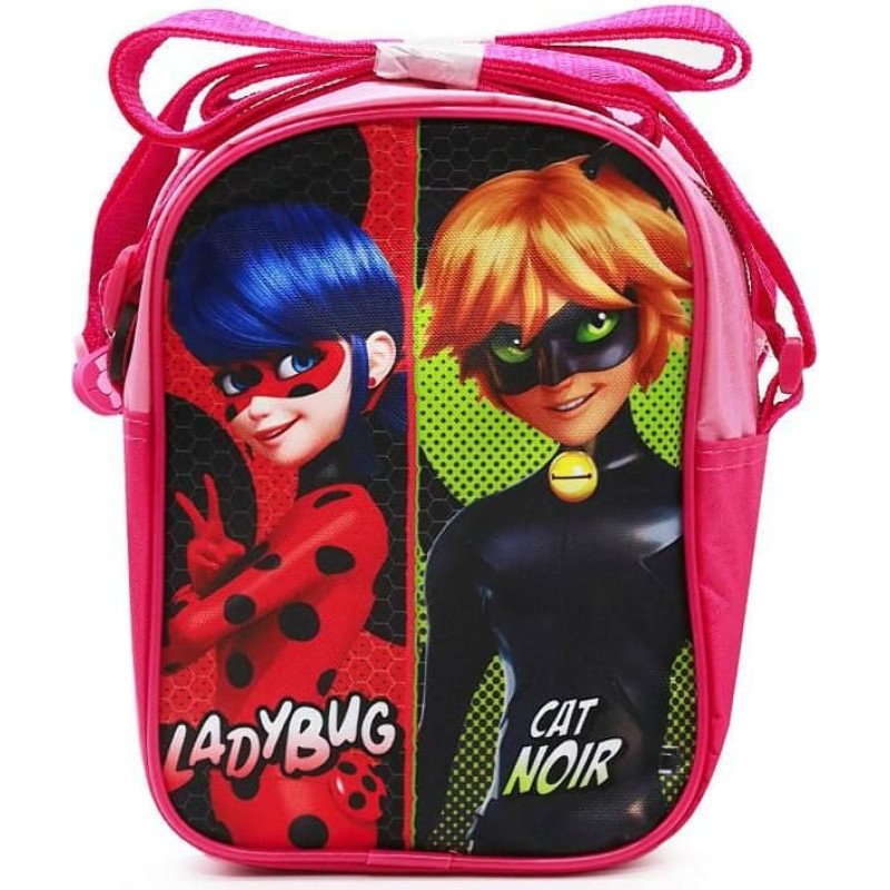 Jūsu iepirkumu grozs ir tukšs! Viena pleca soma Biedronka Miraculum Lady Bug Cat Noir melna kaķu rozā soma 8113 ar regulējamu plecu siksnu