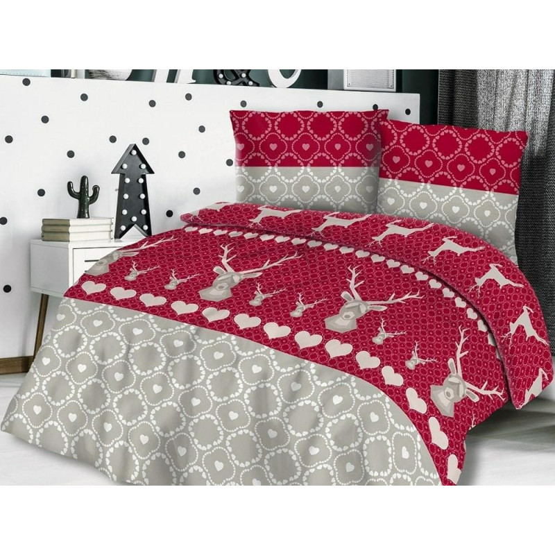 Jūsu iepirkumu grozs ir tukšs! Flaneļa gultas veļa 220x200 Ziemeļbriežu sirdis sarkani pelēka 31457/1 Ziemassvētki