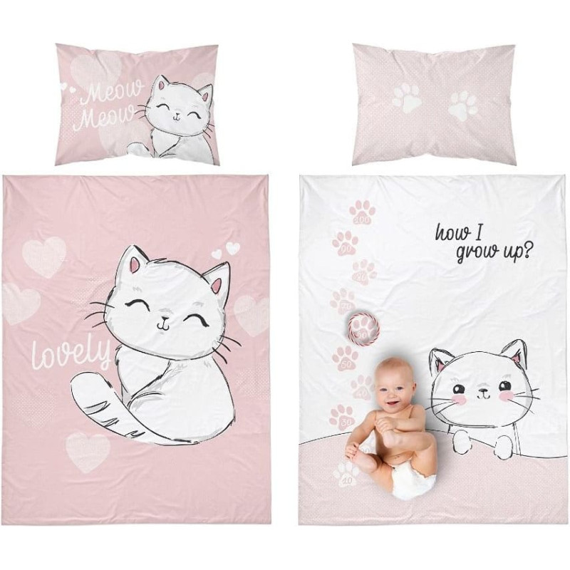 Jūsu iepirkumu grozs ir tukšs! Kokvilnas gultasveļa 100x135 Kaķēni kaķēni kaķu sirdis sirsniņas ķepas rozā 3158 B bērnu gultai 6115 spilvendrāna 40x60