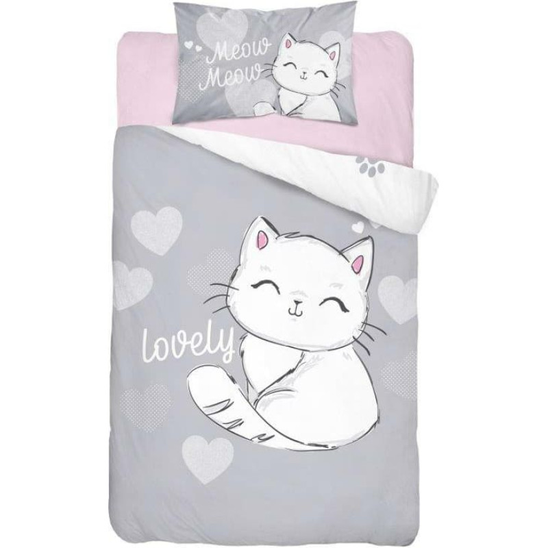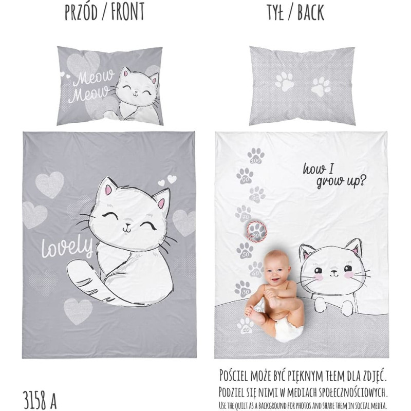 Jūsu iepirkumu grozs ir tukšs! Kokvilnas gultasveļa 100x135 Kaķēni kaķēni kaķu sirdis sirsniņas ķepas pelēkas baltas 3158 A bērnu gultai 6092 spilvendrāna 40x60