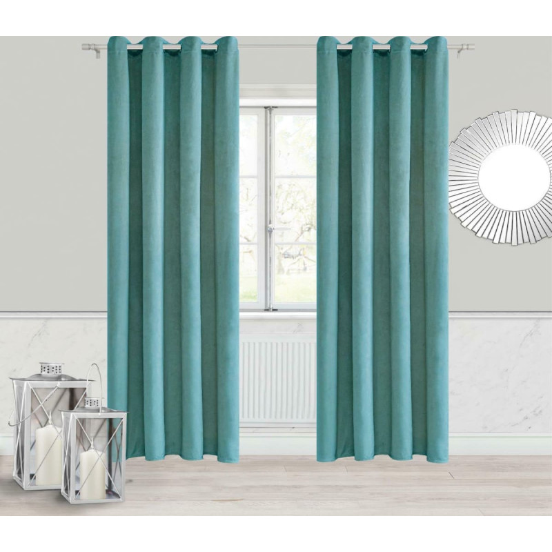 Jūsu iepirkumu grozs ir tukšs! Gatavs aizkars 140x250 piparmētru samts ar samta cilpām viesistabai