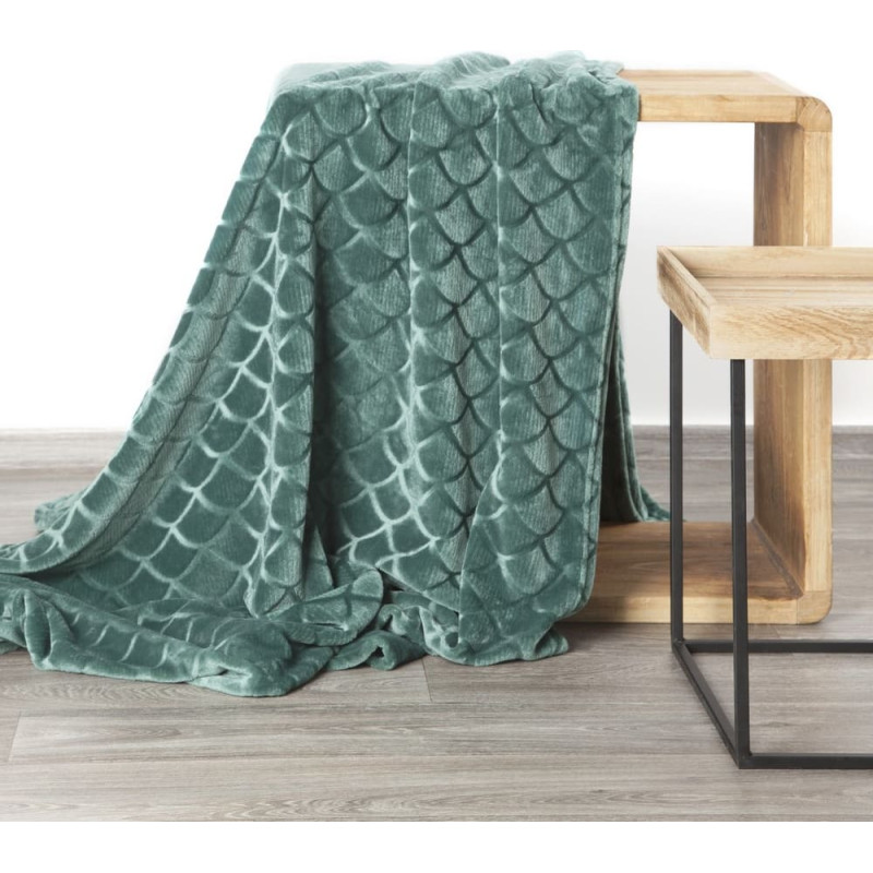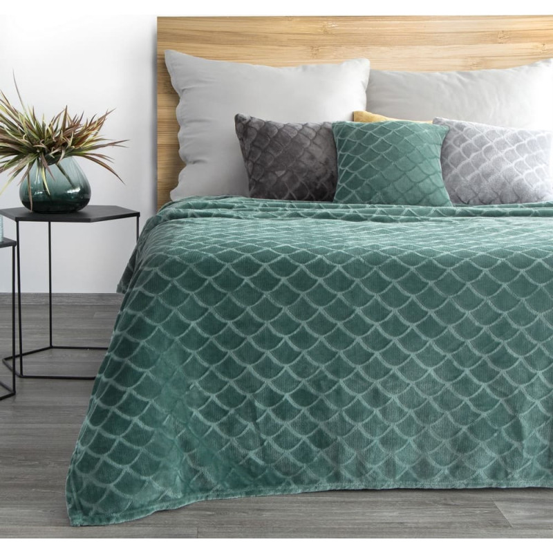 Jūsu iepirkumu grozs ir tukšs! Mikrošķiedras sega 150x200 tirkīza Mery dekorēta ar modernu zivju zvīņainu rakstu Eurofirany