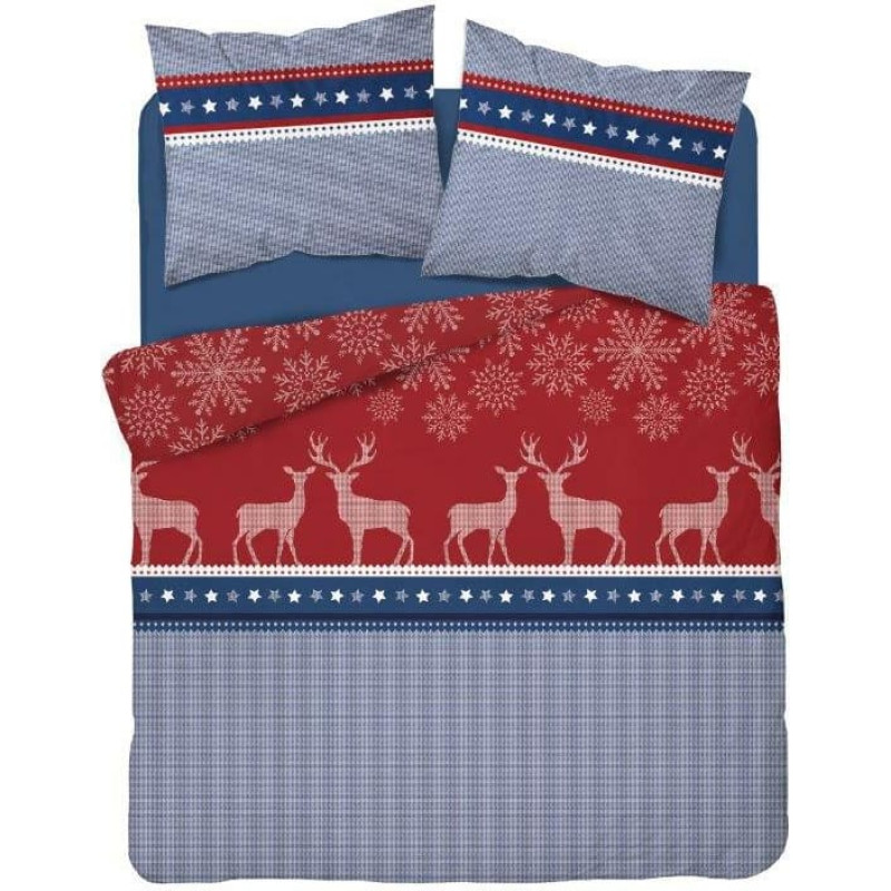 Jūsu iepirkumu grozs ir tukšs! Flaneļa gultasveļa 220x200 Ziemassvētku ziemeļbrieži sniega bumbas sniegpārslas zvaigznes tumši zils sarkans 3305 A
