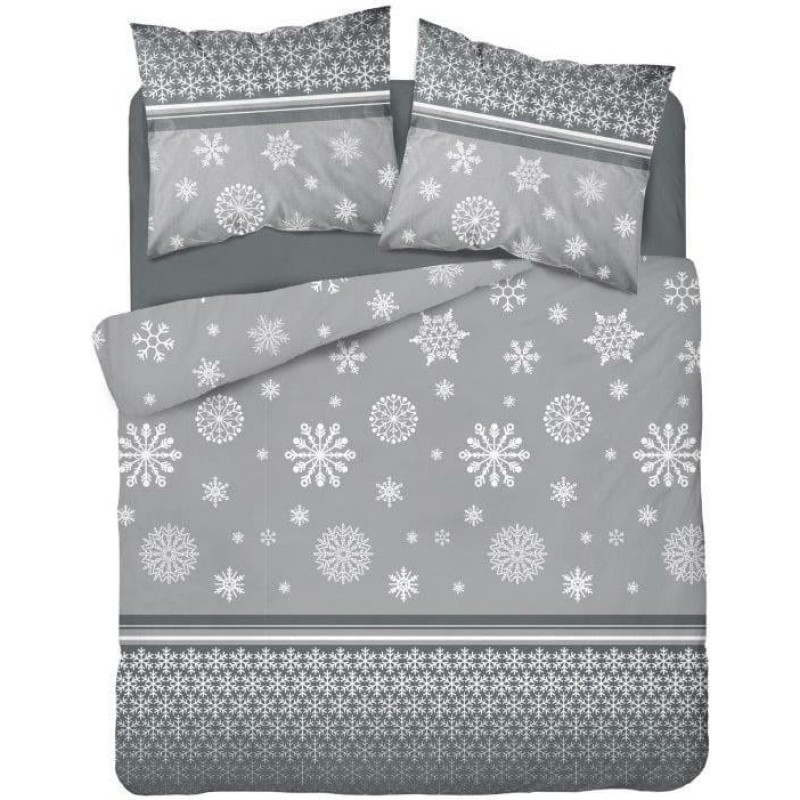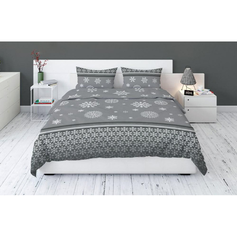 Jūsu iepirkumu grozs ir tukšs! Flaneļa gultasveļa 220x200 Ziemassvētku sniega bumbas sniegpārslas pelēkas baltas 3307 B