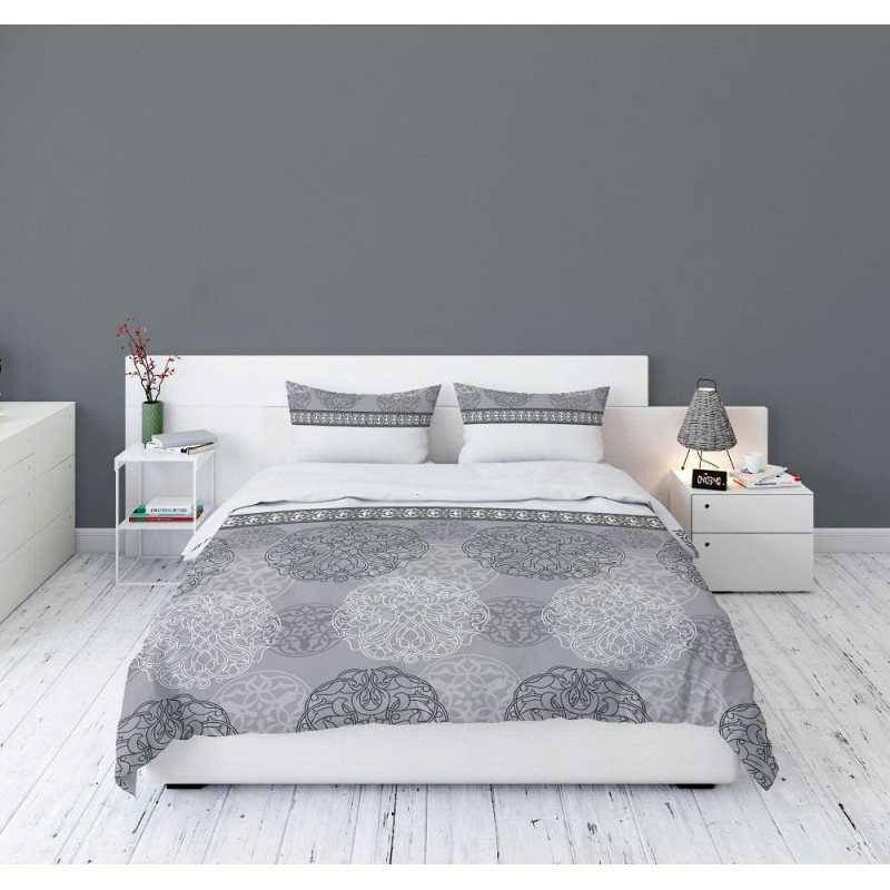 Jūsu iepirkumu grozs ir tukšs! Flaneļa gultasveļa 220x200 Austrumu rozete balta pelēka 3032 A