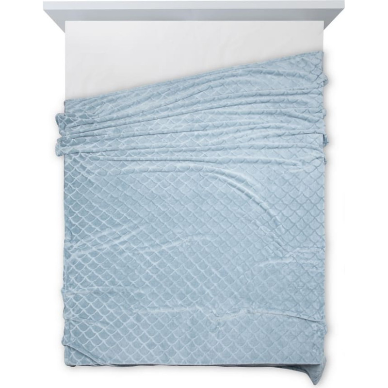 Jūsu iepirkumu grozs ir tukšs! Mikrošķiedras sega 150x200 zila Mery, dekorēta ar modernu zivju zvīņainu rakstu