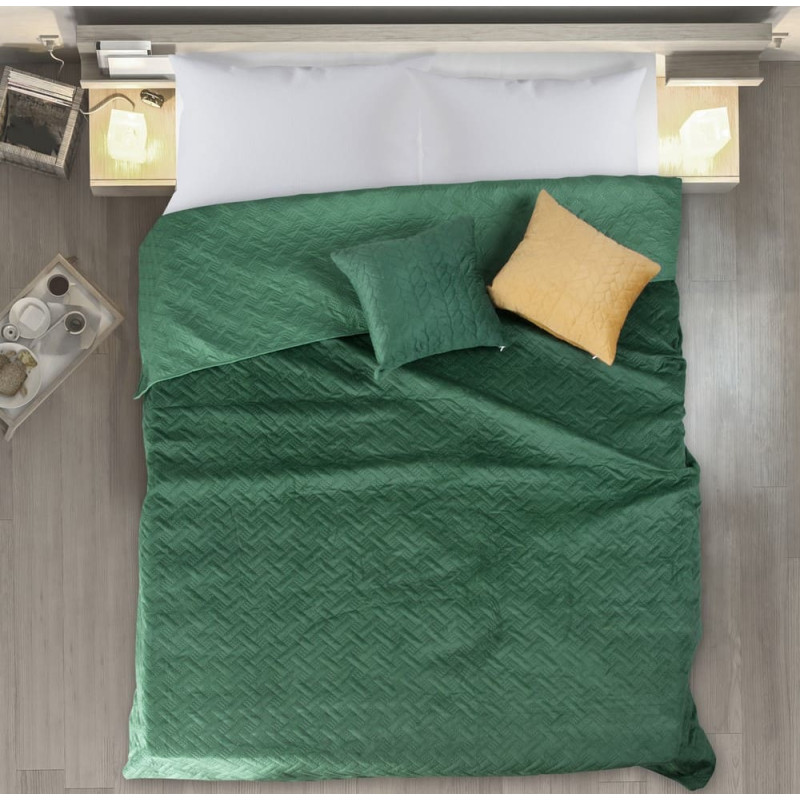 Jūsu iepirkumu grozs ir tukšs! Dekoratīvais gultas pārklājs 170x210 tumši zaļš Luiz 2 velūrs ar ģeometrisku rakstu