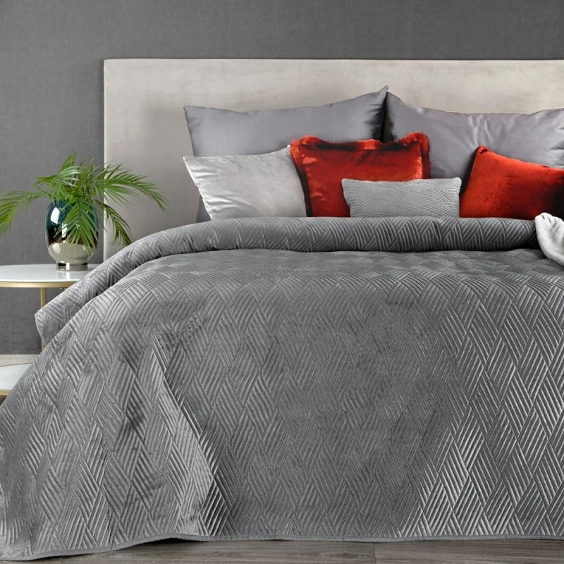 Jūsu iepirkumu grozs ir tukšs! Dekoratīvais gultas pārklājs 170x210 Ariel 1, sudraba velūrs, ģeometrisks raksts