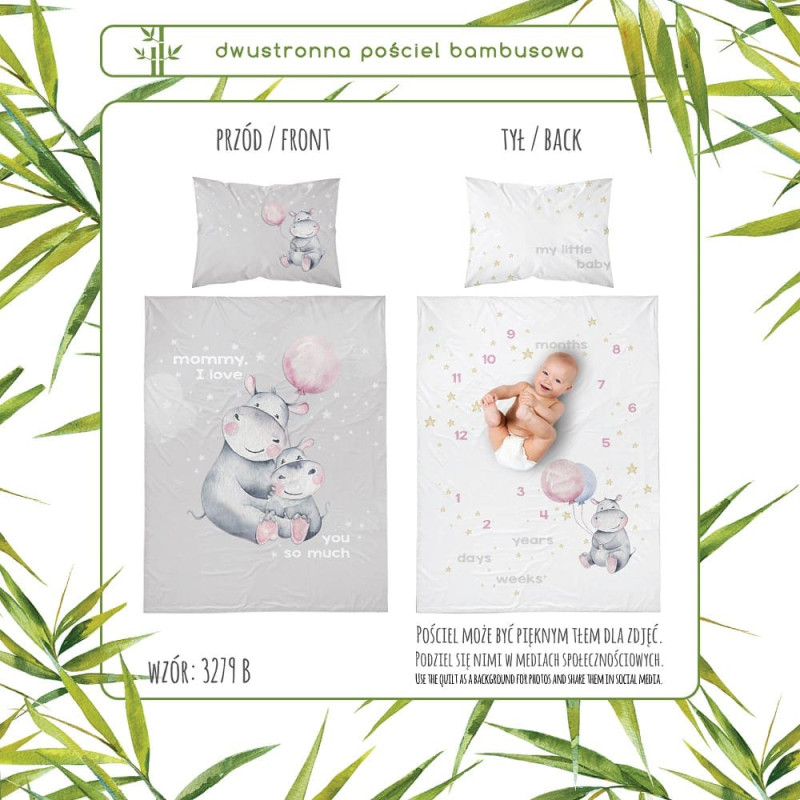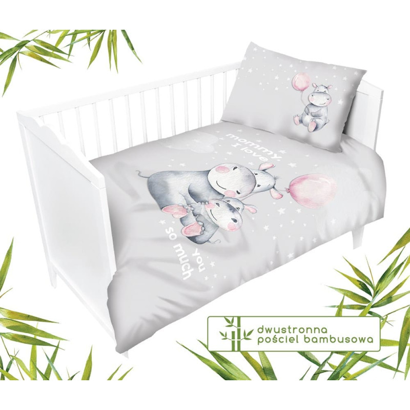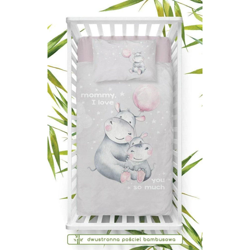Jūsu iepirkumu grozs ir tukšs! Bambusa gultas veļa 100x135 Hipcio Hippopotamus 3279 B pelēka rozā balta gultai abpusēja spilvendrāna 40x60