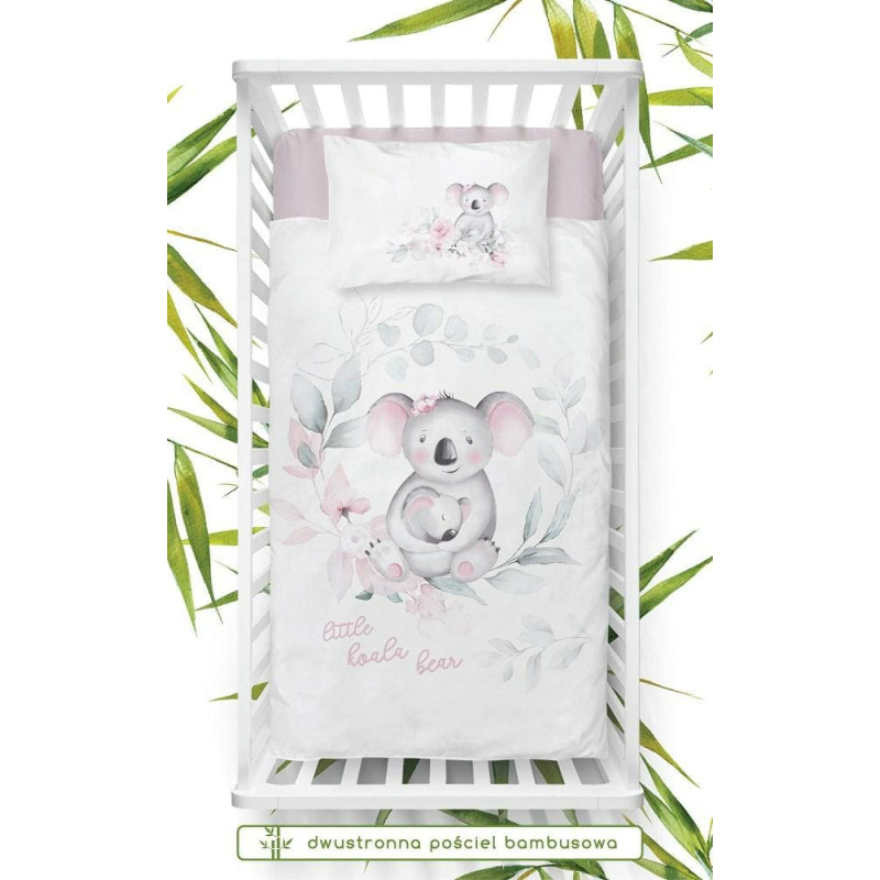 Jūsu iepirkumu grozs ir tukšs! Bambusa gultas veļa 100x135 Koala Bear 3276 B balti rozā pelēkas lapas gultai abpusēja spilvendrāna 40x60