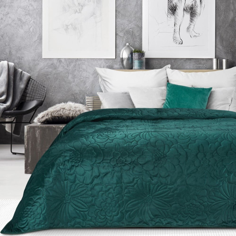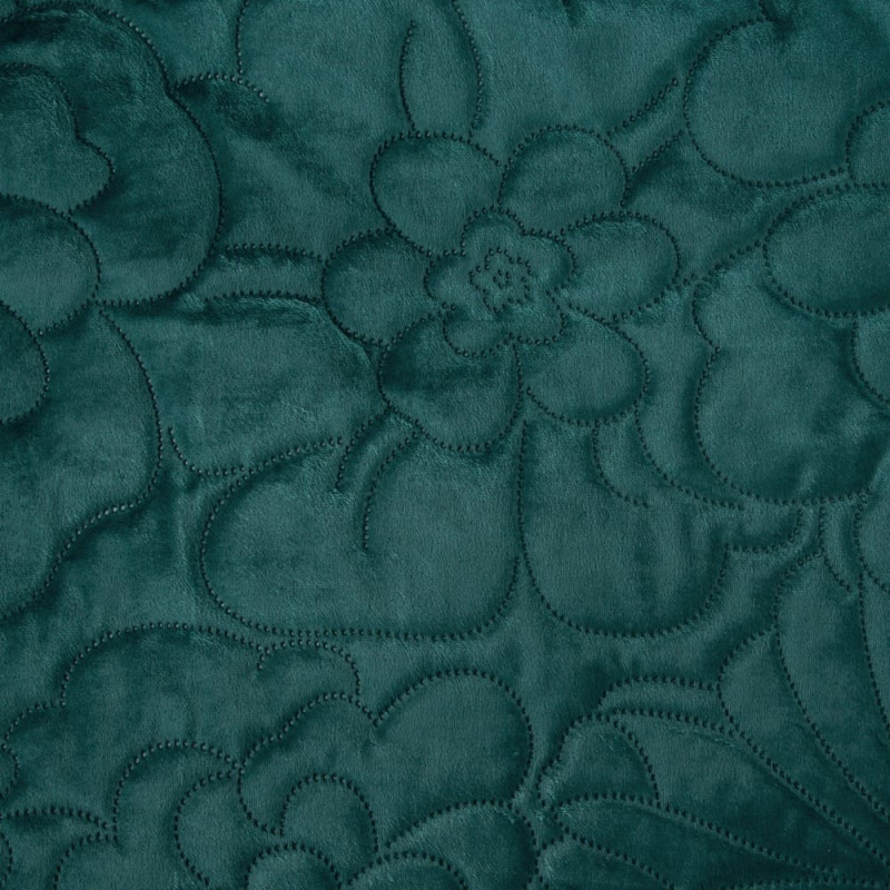 Jūsu iepirkumu grozs ir tukšs! Dekoratīvais gultas pārklājs 200x220 Ariel 4 tumši tirkīza ar ziediem, samts