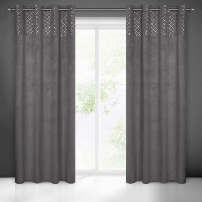 Jūsu iepirkumu grozs ir tukšs! Aizkars 140x250 Lazdu grafīta sudraba rombveida samts gatavs ar cilpām