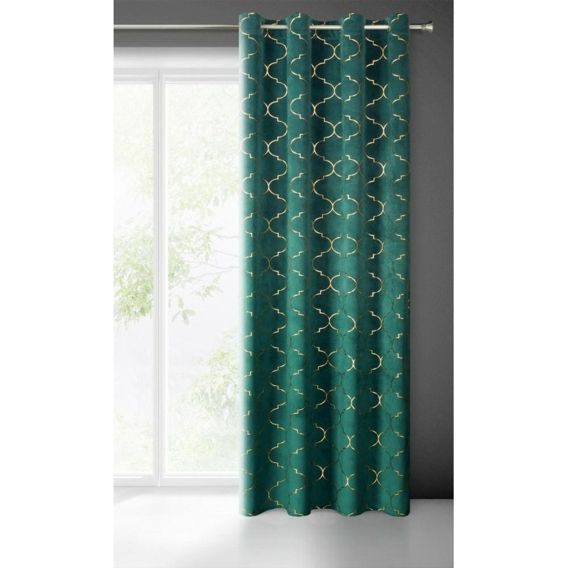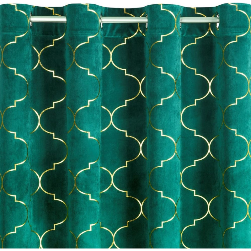 Jūsu iepirkumu grozs ir tukšs! Aizkars 140x250 Gisel zaļš zelts Marokas samta āboliņš gatavs uz starplikām
