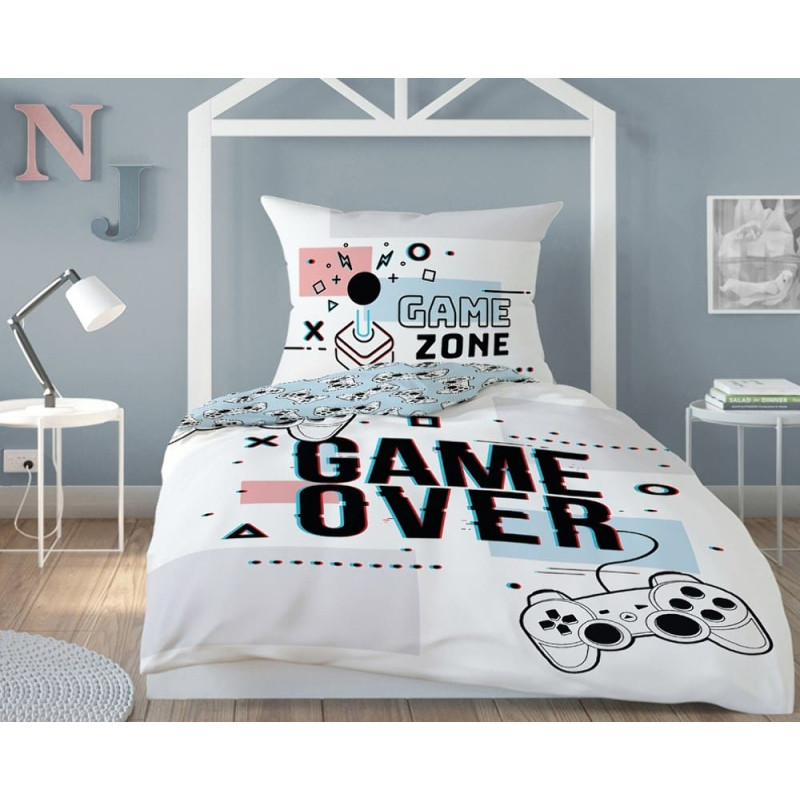 Jūsu iepirkumu grozs ir tukšs! Kokvilnas gultas veļa 160x200 Spēle Virs balta zila 3463 2994