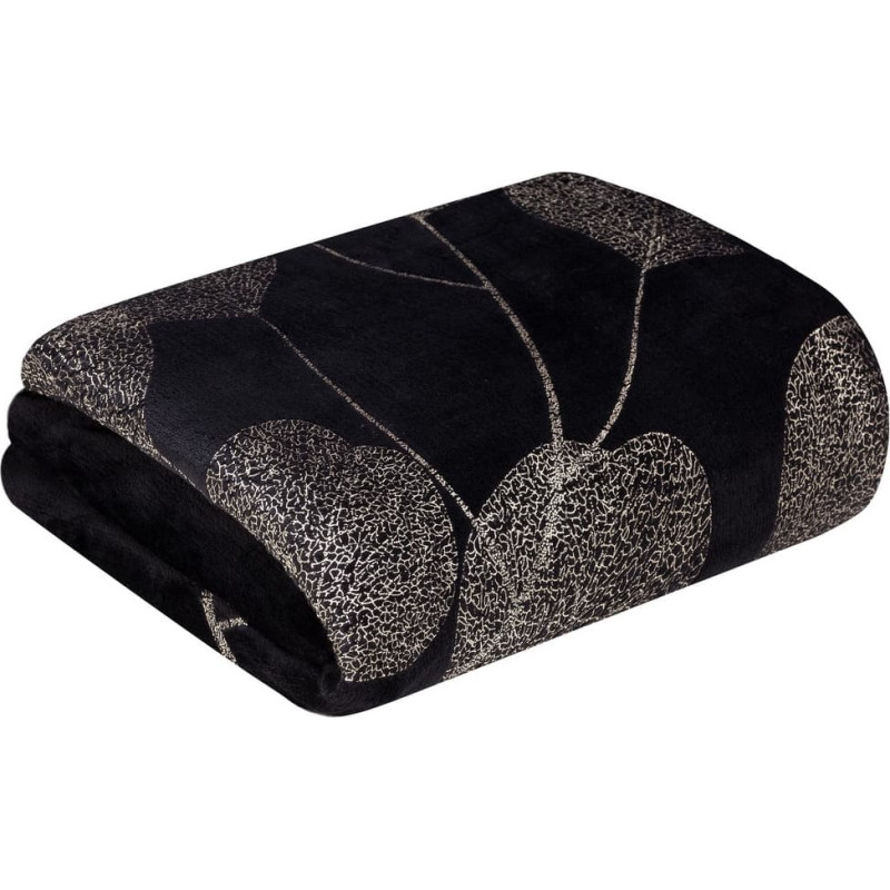 Jūsu iepirkumu grozs ir tukšs! Mikrošķiedras sega 150x200 Ginko 2 melna ar spīdīgu lapu apdruku