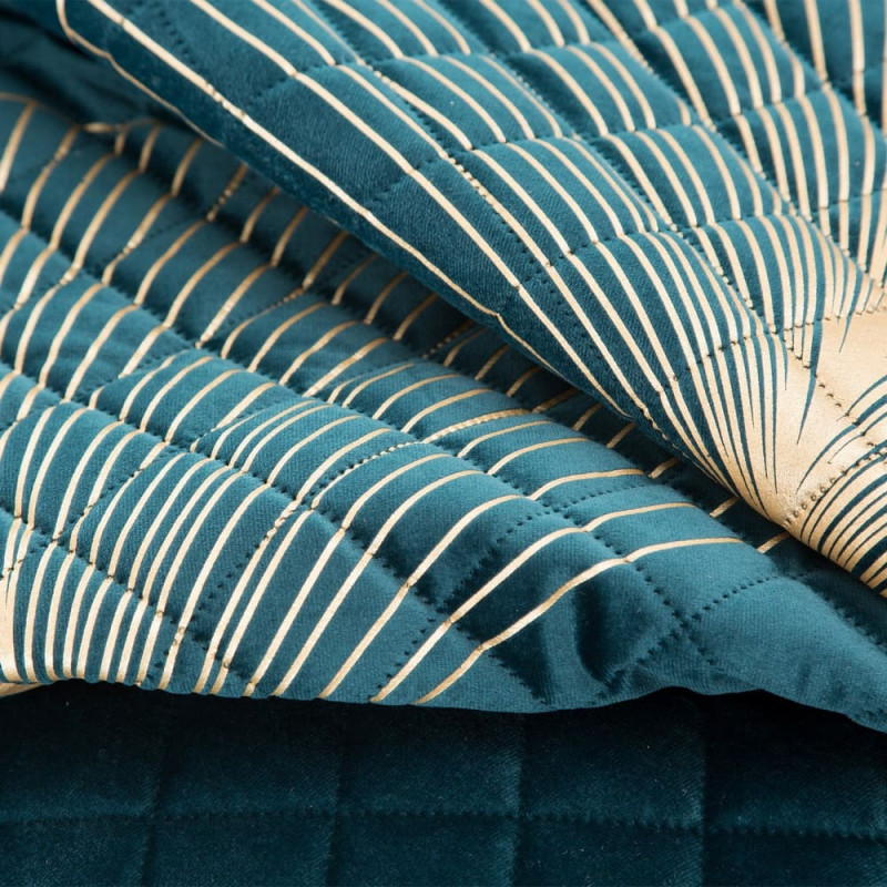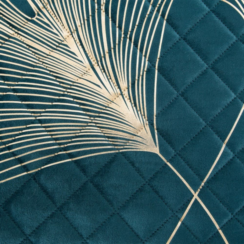 Jūsu iepirkumu grozs ir tukšs! Dekoratīvais gultas pārklājs 170x210 Ginko 1 tirkīza tumši zelta samta ginkgo lapas