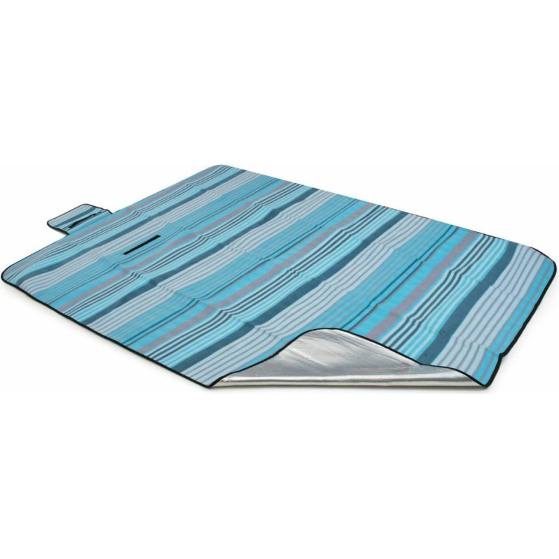 Jūsu iepirkumu grozs ir tukšs! Piknika sega ūdensizturīgs 150x200 svītras 021 zils pelēks tumši zils flīss ar izolējošu pludmales paklājiņu