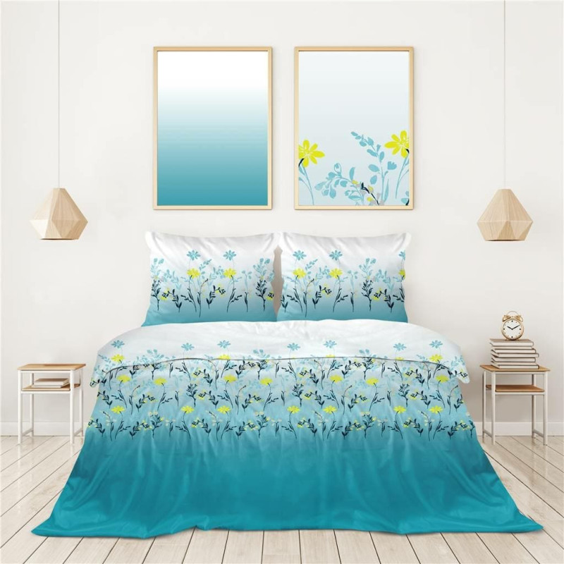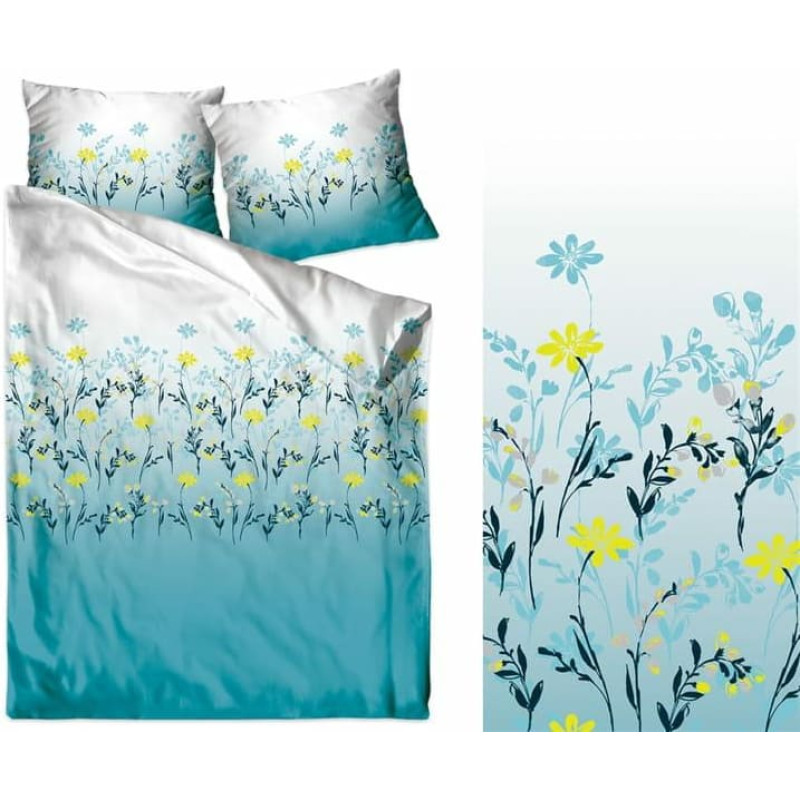 Jūsu iepirkumu grozs ir tukšs! Kokvilnas gultasveļa 160x200 Charming Morning tirkīza pļavas ziedi Bielbaw