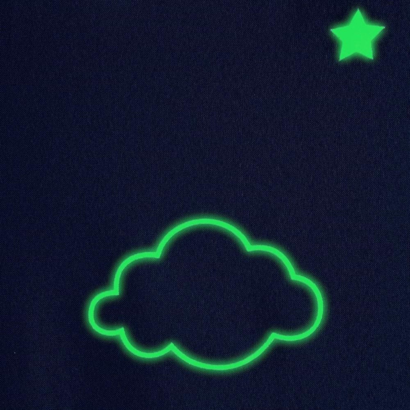 Jūsu iepirkumu grozs ir tukšs! Tumsā mirdzošs aizkars 140x250 Nubles, tumši zils, mākoņi, zvaigznes, gatavs uz cilpām ar fluorescējošu apdruku