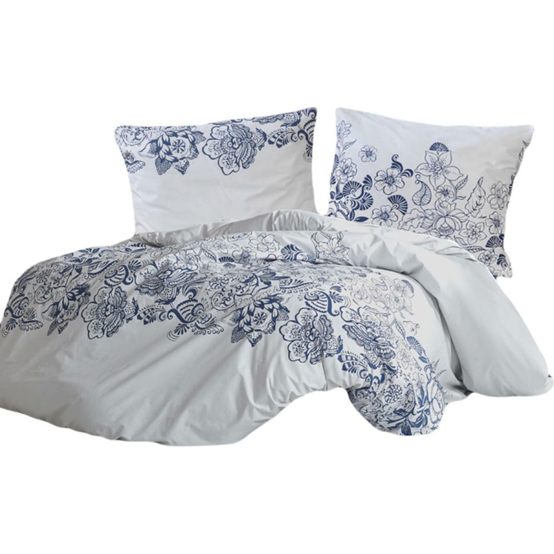 Jūsu iepirkumu grozs ir tukšs! Kokvilnas gultasveļa 160x200 Mandora 1 Ziedi balti zili Exclusive 2