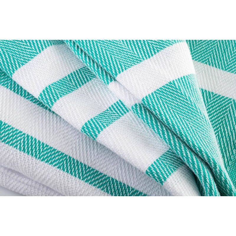 Jūsu iepirkumu grozs ir tukšs! Pludmales dvielis 100x180 Hamam tirkīza baltas svītras bārkstis kokvilnas vannas dvielis 210g/m2
